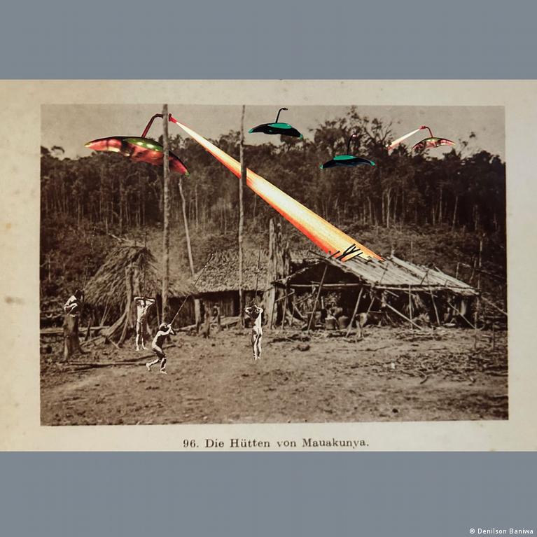 „Cacadores de Ficcoes Coloniais” („Vânători de ficțiuni coloniale”, 2021) de Denilson Baniwa folosește fotografii antropologice timpurii utilizate pentru a clasifica sau exotiza popoarele indigene, în care el încorporează figuri din cultura pop globală – de exemplu DeLorean-ul din „Înapoi în viitor”, King Kong sau chiar Godzilla. Prin inserarea acestor icoane în unele dintre cele mai vechi imagini etnografice din Amazon, el creează scene jenante, punând ironic sub semnul întrebării modul în care astfel de fotografii, colecții și cunoștințe antropologice au modelat stereotipuri despre popoarele indigene.