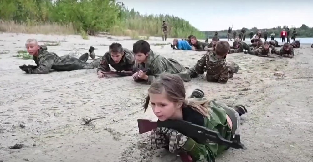 Pe malul râului Don, 83 de copii cu vârste între 8 și 17 ani au luat parte la un „marș pe traseu”, alternând alergarea cu târârea pe burtă prin nisip și prin apa puțin adâncă. Mulți purtau uniforme de camuflaj, iar unii dintre ei mânuiau arme reale, în timp ce alții foloseau replici de jucărie.