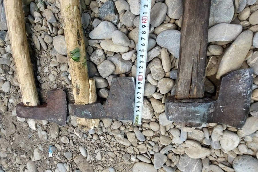 Topoare descoperite în atelajele celor doi suspecţi. FOTO. IJJ Dâmboviţa